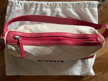 Originale Lacoste, in tessuto (pattern a palline da tennis) e profili in pelle colore fucsia, col sup sacchettino antipolvere.