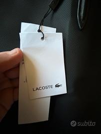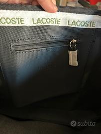 Borsa Lacoste in nero, nuova con etichette visibili. Include una tasca interna con cerniera e manici protetti.