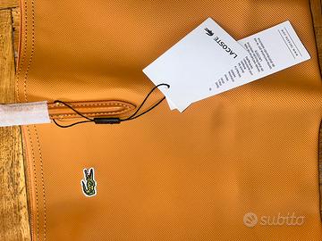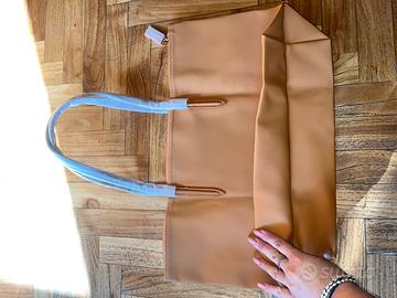 Vendo questa bellissima shopping bag, di dimensioni 43x27 cm circa. Mai utilizzata e provvista ancora di etichetta e degli imballaggi mostrati in foto. Super spaziosa, entrano quaderni, libri e notebook. Il materiale è il PVC con rivestimento interno in poliestere. Presenta chiusura a cerniera e tasca interna. Il prezzo è di poco trattabile.