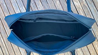 Borsa originale colore nero materiale esterno gommato lavabile ,2 manici no tracolla fodera interna in tessuto lavabile con tasche interne porta accessori