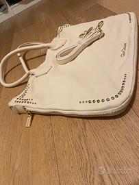 Borsa laptop bianca con borchie laterali Gio Cellini con tracolla Mai usata