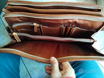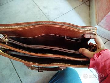 Questa valigetta Cole Haan è un must per ogni professionista sempre in movimento. Realizzata in pelle di alta qualità in un bellissimo colore marrone chiaro, è sia elegante che resistente. La valigetta è dotata di chiusura a cerniera, tracolla regolabile e numerose tasche per tutti gli oggetti essenziali per il lavoro. Con il suo design vintage e lo stile country, questa valigetta è perfetta per i viaggi e per l'abbigliamento da lavoro quotidiano. È inoltre dotata di divisori interni e di una custodia per laptop per una maggiore protezione. Che tu stia andando a una riunione di lavoro o che tu abbia semplicemente bisogno di una borsa affidabile per il tuo tragitto quotidiano, questa valigetta Cole Haan è la scelta perfetta.