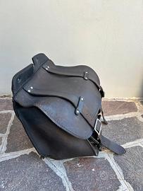 vendo borsa laterale in pelle per moto con normali segni di usura, usata su Harley Davidson 883