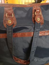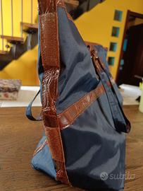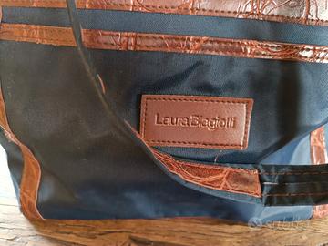 Borsa "Laura Biagiotti" Blu con Inserti in Pelle e Doppio Manico - Eleganza e Comfort con un Tocco di Raffinatezza