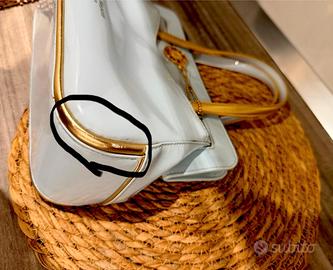 Elegante borsa Laura Biagiotti con finiture dorate. - Materiale lucido. - Manici dorati.