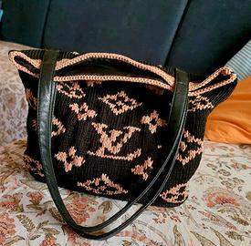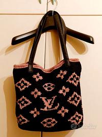Borsa a spalla interamente lavorata a maglia, lavorazione ai ferri in