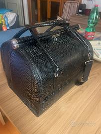 Bellissima borsa lavoro per manicure/ricostruzione unghie in simil coccodrillo nera con scomparti come da foto