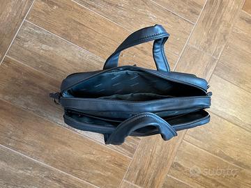 Borsa in morbida ecopelle per uso intensivo. Tracolla removibile e regolabile con l imbottitura salvaspalla. La tasca posteriore nasconde una fascia per fissaggio al trolley. Pareti organizzate per penne e biglietti. Vani imbottiti per pc / tablet. Mai usata. Vendo perche uso zaino.