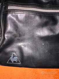 Borsa Le Coq Sportif anni 90, con delle tasche interne, possibilità di portarla come borsa da spalla con le maniglie come si vede in foto, ma anche di inserire la fascia a tracolla. Lunghezza 50 cm e altezza 30 cm, in buono stato ma con qualche segno del tempo come in foto.