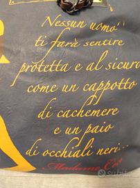 borsa blu e arancio le pandorine misure 36x45x15 usata poco riporta una citazione di Coco Chanel