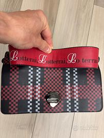 Borsa le pandorine a spalla dal design originale e moderno, caratterizzata da una vivace stampa a motivo geometrico a quadretti in bianco, nero e rosso.