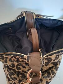 vendo borsa leopardata con doppia cerniera e con tracolla, in ottime condizioni (usata 2 volte) con taschini interni e cerniera interna.