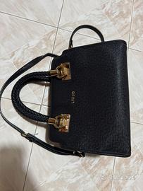 Elegante borsa a mano Liu Jo modello bauletto in resistente finitura effetto Saffiano nero, impreziosita da dettagli in metallo dorato e logo frontale in rilievo. Il design si distingue per i raffinati manici intrecciati che donano un tocco unico e sofisticato, uniti alla praticità della tracolla regolabile e rimovibile . Ideale per completare outfit sia casual che formali, offre uno scomparto spazioso con chiusura a zip per la massima sicurezza. Un accessorio versatile e chic, perfetto per chi cerca stile senza rinunciare alla funzionalità quotidiana.