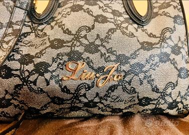 Vendo borsa Liu Jo originale, colore beige con stampa nera effetto pizzo e dettagli dorati.