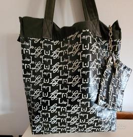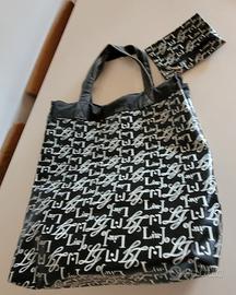 borsa shopping nera con pochette staccabile, i manici sono un pò sbiaditi,visibile in foto