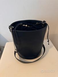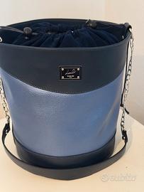 Borsa Lizalu’ a forma di secchiello in pelle blu scuro e chiaro, mai usata nuova