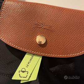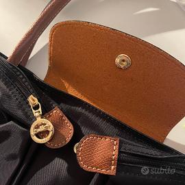 Borsa Longchamp nera con manico in pelle marrone