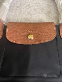 Borsa Longchamp con patta in pelle. Colore nero. Dettaglio in pelle marrone. Taglia L. Spedizione in meno di 24 ore. Non allego numero di serie perché questo prodotto non lo ha.