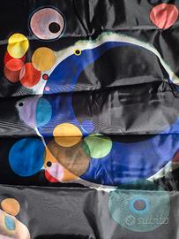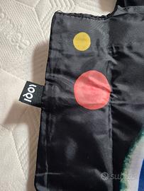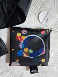 Borsa riutilizzabile Loqi con un design astratto e colorato. Misure 48cm x 40cm - Fantasia con cerchi multicolore su sfondo nero. - Manici resistenti per un facile trasporto. - Materiale durevole e leggero. Con custodia 12,5 cm x 12,5 cm