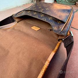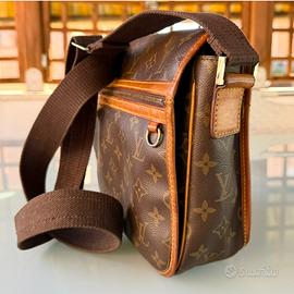 Borsa a tracolla Louis Vuitton Messenger Bosphore PM in monogram con rifiniture in vacchetta naturale. Tasca a zip frontale. Apertura a patta con magneti. Altra tasca aperta, interni in tela marrone con due taschine, logo Made in France e codice di autenticità MB0016. Tracolla regolabile.