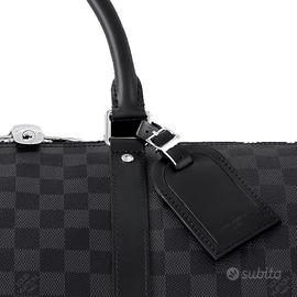 La versione media della Keepall viene proposta nell'elegante tela Damier Graphite. Spaziosa e leggera, si porta facilmente a spalla grazie alla comoda tracolla regolabile e amovibile in pelle.