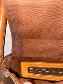 Borsa Louis Vuitton modello Looping MM (misura media), la borsa é usata peró tenuta bene (senza ricevuta,scontrino o scatola originale in quanto regalata da un parente), nelle foto si intravede il codice VI0042 (04-mese Aprile,02-Anno 2002) é stata prodotta in Francia nell’Aprile del 2002. Il materiale é Tela Monogram e manico in vacchetta naturale, l’interno: Fodera in alcantara color beige/marrone chiaro con tasca interna con zip. La tela (canvas) é in ottime condizioni, senza crepe o abrasioni sugli angoli. Il manico, la vacchetta ha preso una bella patina ambrata (mielata) tipoca del vintage. Presenta lievi scurimenti nella parte interna dovuti al contatto con la mano. L’interno é pulito, senza macchie di inchiostro o odori. Le dimensioni sono circa 24 cm x 21 cm x 10 cm.