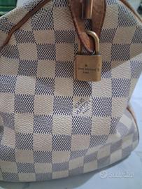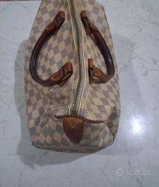 Vendo una borsa/bauletto Louis Vuitton Damier Azur, presenta una personalizzazione con due iniziali in oro: L/N. Presenta inoltre una cerniera sostituita, quindi non originale.