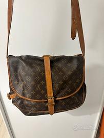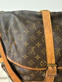 borsa a tracolla Louis Vuitton Saumur 35 in tela Monogram marrone e pelle di vacchetta naturale.