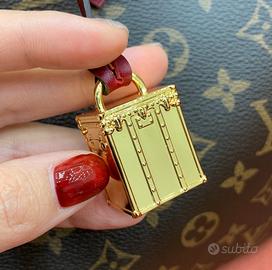 Borsa Louis Vuitton in tela Monogram marrone con dettagli in pelle rosso rubino. Ha doppi manici per portarla a mano e tracolla removibile per indossarla anche a spalla. Finiture dorate e charm decorativo completano il design. Elegante, pratica e perfetta per tutti i giorni. ✨