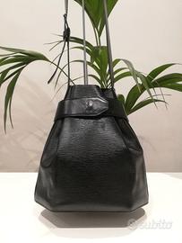 Borsa a secchiello Louis Vuitton Sac D'épaule PM in pelle Epi nera con tracolla regolabile per portarla a spalla o a mano, chiusura con bottone a pressione e fodera interna in camoscio nero. Condizioni ottime.