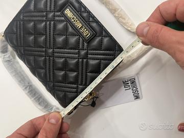 Chiusura con patta, catena dorata sul manico, perfetta per look da giorno o da sera.