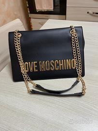 Elegante borsa Love Moschino. - Colore nero. - Dettagli con catena color oro. - Logo LOVE MOSCHINO dorato sul davanti.