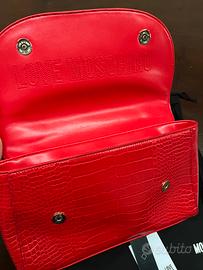 Vendo causa inutilizzo borsa Love Moschino originale, colore rosso con texture effetto coccodrillo e dettagli in metallo dorato.