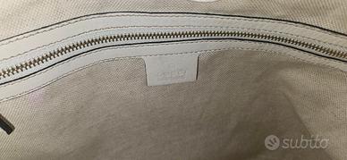 Borsa Gucci modello hobo in pelle bianca martellata con tracolla rosso/ Forma capiente e comoda da portare a spalla Tracolla regolabile in pelle Charm/pendente in pelle originale