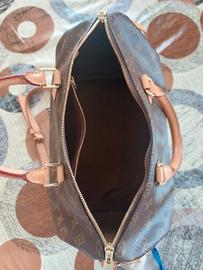Vendo borsa Speedy Bandoulière 35, originale Luis Vuitton, praticamente nuova, mai usata. In tela Monogram, i manici in pelle, il lucchetto con incisione e la tracolla amovibile e regolabile. 35 x 23 x 18cm (Lunghezza x Altezza x Larghezza ) Tela Monogram Finitura in vacchetta naturale Fodera in tessuto Parti metalliche dorate Zip a doppio cursore Lucchetto Tasca piatta interna •Tracolla:Amovibile, regolabile