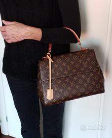 Borsa Louis Vuitton, modello CLUNY MM, anno 2022. In tela monogram. Finiture in vacchetta naturale. Munita di tracolla nei toni azzurro e marrone. Pattina frontale con chiusura magnetica. Interno foderato con comode tasche. Piedini di appoggio alla base.
