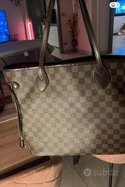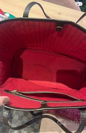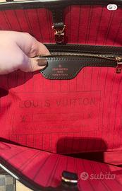 Vendo borsa lv modello neverfull damier ebene misura MM tenuta benissimo. Inclusa la pochette da inserire all’interno. Piccolissimo difetto sulla cucitura inferiore