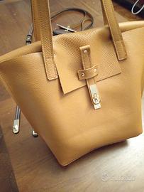 Borsa in vera pelle artigianale unico pezzo da campionare esposizione nuova fatta con lama e righello made in Italy.