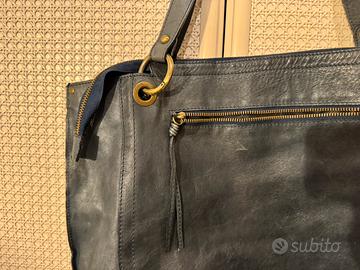 Borsa Malloni pelle blu grande capienza