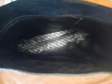 Elegante borsa ManGiameli - Made in Italy - realizzata in pelle scamosciata nera con inserti centrale in pelle marrone stampa coccodrillo. La borsa può essere portata sia a mano, sia a tracolla grazie all'elegante catenina dorata .Chiusura con bottone automatico logato dorato, interno pulito in ottime condizioni.