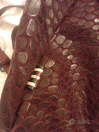 Borsa a mano con catena Manila Grace, realizzata in eco-pelle stampa coccodrillo. La chiusura è a cerniera e l’interno è foderato in tessuto e presenta uno scomparto con tasche porta oggetti.