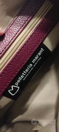 Borsa a spalla in vera pelle con tasche laterali e tracolla regolabile Come nuova, colore BORGOGNA Misure in cm:27 x 12 x 16(Lunghezza Zip:22 cm) Misure tasca frontale in cm:19 x 2 x 12 Luce Manico:18 cm Lunghezza massima tracolla regolabile:125 cm Chiusura con Zip e Clip per le tasche laterali. Materiale: Vera pelle di vitello Foderainterna: Tessuto chiaro Modello: Costruzione morbida (Mantiene la sua forma), manico fisso in pelle. Interno: Unico grande comparto, Tasca interna con zip. Accessori:Metallo color Oro, tracolla regolabile in lunghezza, piedini in metallo sul fondo, tasca frontale con zip, tasche esterne laterali con clip, tasca esterna sul retro con zip, Sacca protettiva in tessuto anti polvere con logo Pelletteria Marant