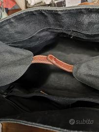 Borsa a mano e tracolla in tela/stoffa nera piedini di appoggio finiture in cuoio marca GRANELLO primo marchio di Miuccia Prada misura 33x24 misura senza manici marchiata sulle borchie alla base dei manici ed all'interno buone condizioni (CAS)