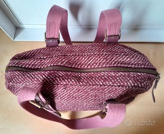 Borsa marca Stradivarius fantasia bordeaux e avorio con due manici.