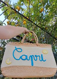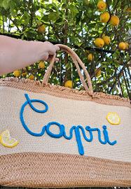 Borsa mare in paglia,chiusura a cerniera,la scritta è realizzata in tricotin,mentre le applicazioni sono realizzate ad uncinetto,il tutto è personalizzabile ... possibilità di avere anche la visiera abbinata