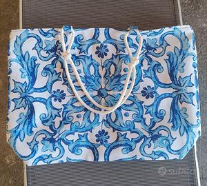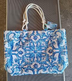 Borsa Mare Sicilian Vibes Craft Blu Nuova con cartellino misure cm 65x57x14.