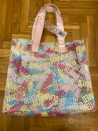 Borsa mare GLIMMED doppia. La prima borsa è trasparente con le scritte e i nanici rosa chiaro, ma seconda borsa è rosa chiaro foderata e con taschine interne. Prodotto nuovo con ancora il cartellino. È presente una tracolla a catena trasparente.