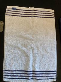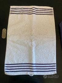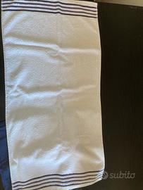 Set composto da un asciugamano circa 95 X 46 cm + asciugamano piccolo circa 54 X 37 cm bianchi con righe viola.
