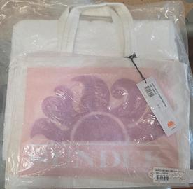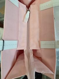 borsa mare sundek medium canvas nuova con cartellino completa imballo negozio. colore rosa e bianco, molto capiente. aperta solo per fare le foto e controllare le misure. completa di accessorio portachiavi da attaccare anello frontale o laterale. due tasche laterali ed una interna. chiusura a zip misure h 27 base 37 prof 18. spedizione rapida