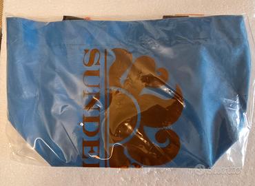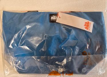 borsa mare sundek small tote bag nuova con cartellino completa imballo negozio. colore turchese, molto capiente. aperta solo per fare le foto e controllare le misure. misure h 20 base 22 (parte superiore 34) prof 15. chiusura zip. spedizione rapida